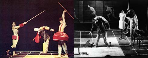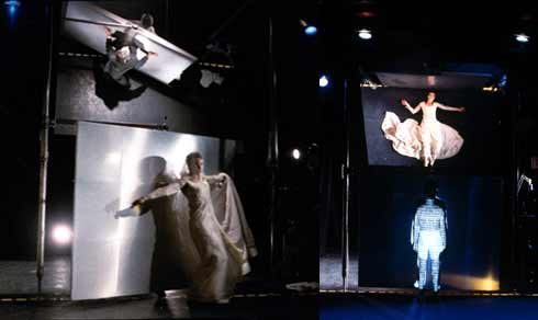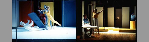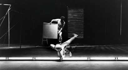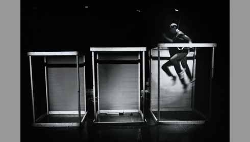 White/Black represents theatrically the four dimensions known to physics using a color progression: black on black, white on black, black on white, white on white. The artist's search for a geometric homeland culminates in sensory overload and white-out. A choreographic exploration of the human figure moving from a darkened landscape into light and color.